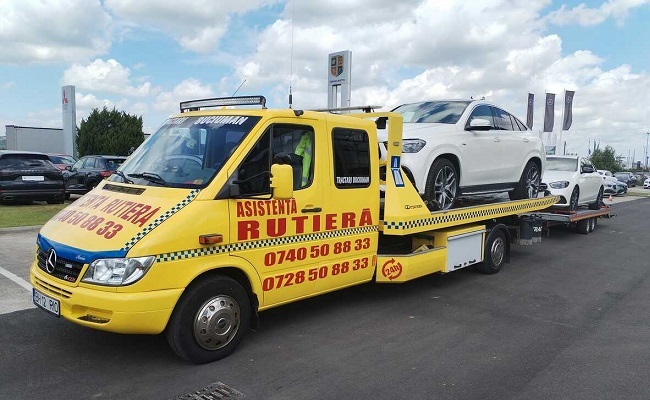 SUV Porsche 4x4 cu remorcă tip platformă.